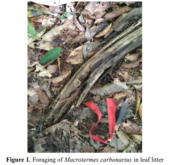 Five model species of termites where chosen for observation based on their abundance and the impact on litter decomposition: Macrotermes carbonarius (Hagen), M. gilvus (Hagen), M. malaccensis (Haviland), Hypotermes obscuriceps (Wasmann), Hospitalitermes bicolor (Haviland). As two second species of Macrotermes are not possible to separate from each other in the field, they were united and further are referred as “M. gilvus/malaccensis”. All other termite species recorded during observations were referred as “others”. Identification of termites was based on communication with Belyaeva N.V.